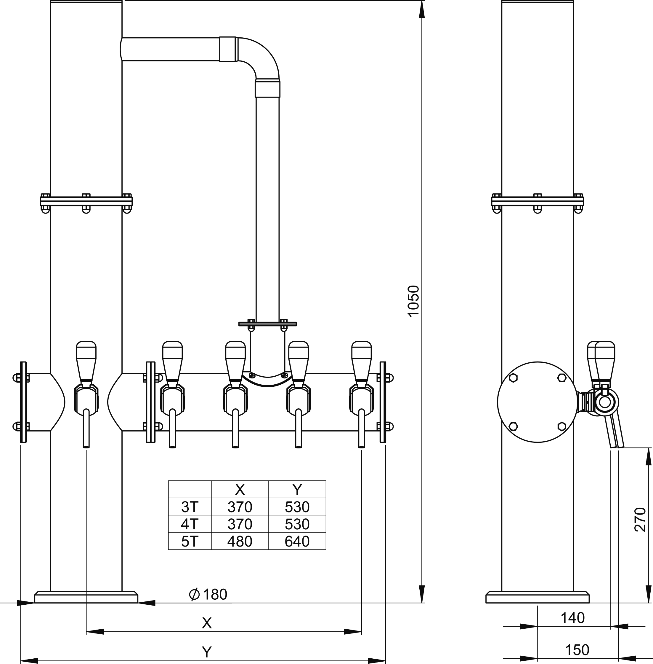 Colonne asymétrique toute cuivrée, traversant votre ciel de bar, jusqu’au comptoir.