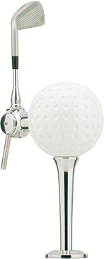 Les fidèles du clubhouse apprécieront cette réplique d’une balle de golf, pièce de résine massive et laquée ! La poignée est issue d’un véritable club.