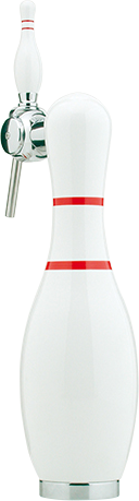 Strike, Spare … Tirez la bière avec cette reproduction de quille de bowling. Pièce de résine tournée et laquée.