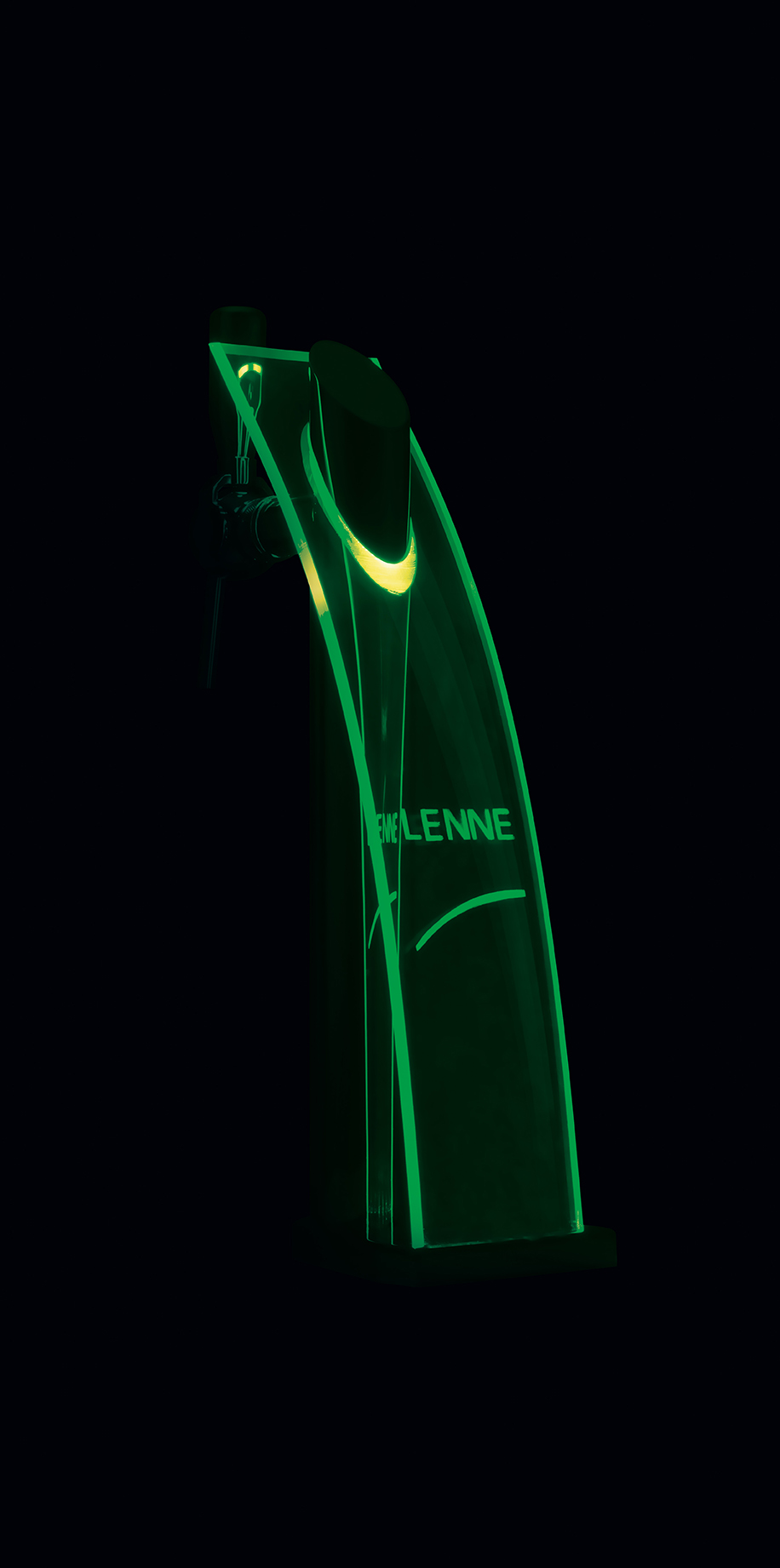 Elle aura sa place dans une ambiance tamisée ou dans le monde de la nuit … Les LED de couleurs illumineront le nom de vos bières ou de votre établissement sur cette lame translucide