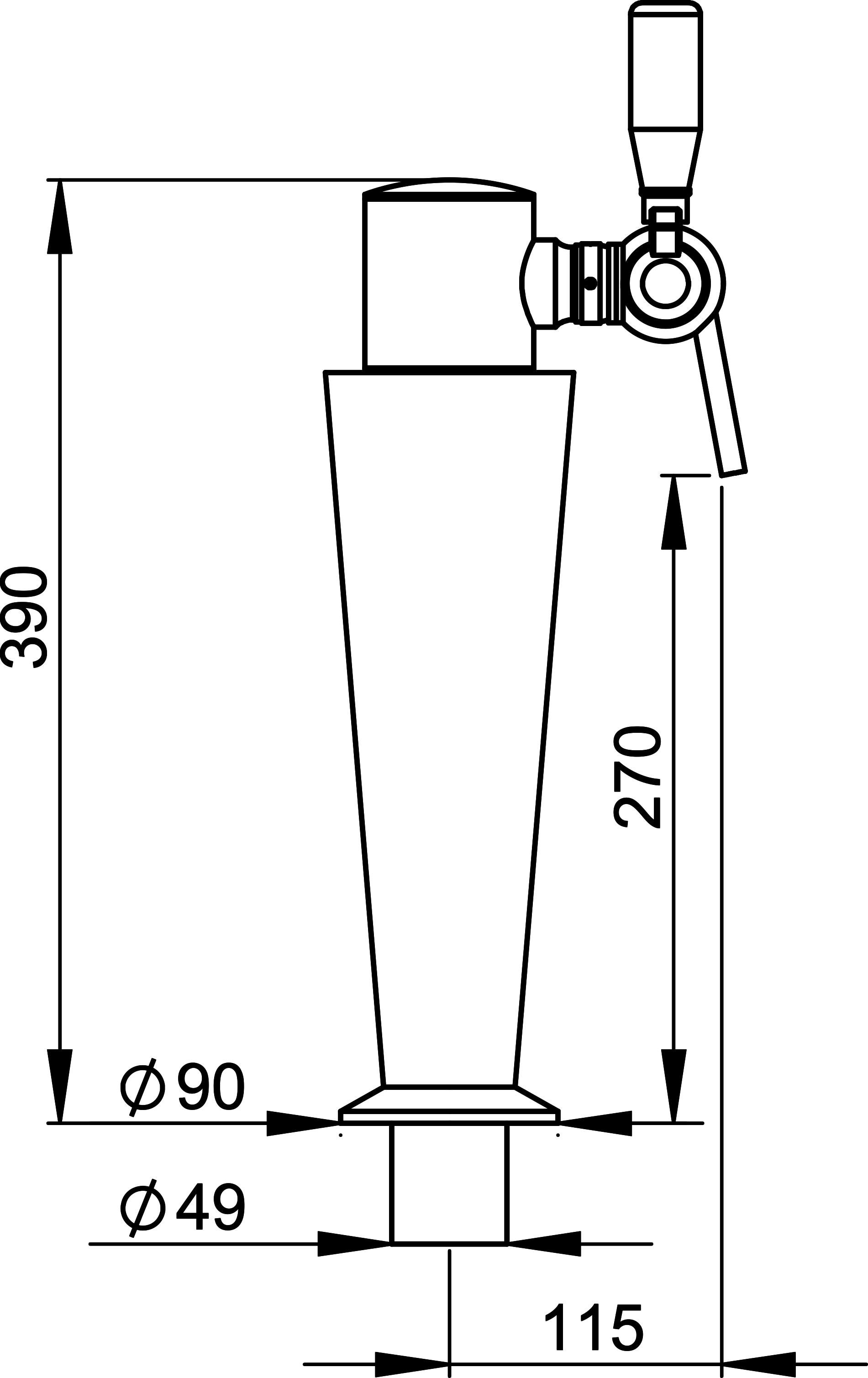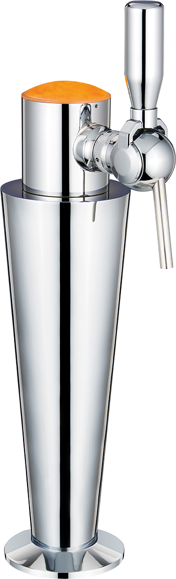 Gromm service … pour servir vos bières. Une forme originale réalisée à partir d’un cône en laiton chromée. La tête est illuminée.