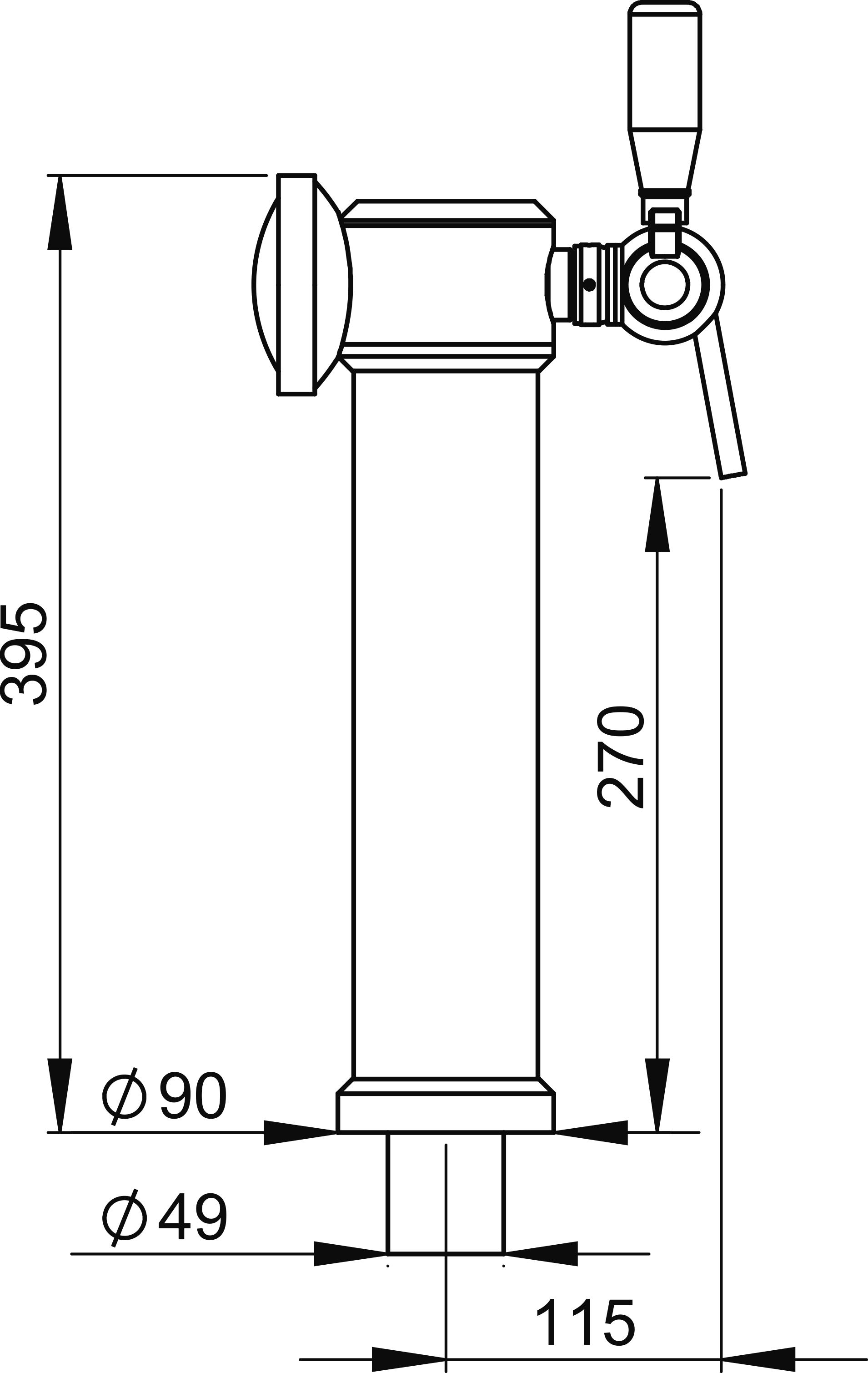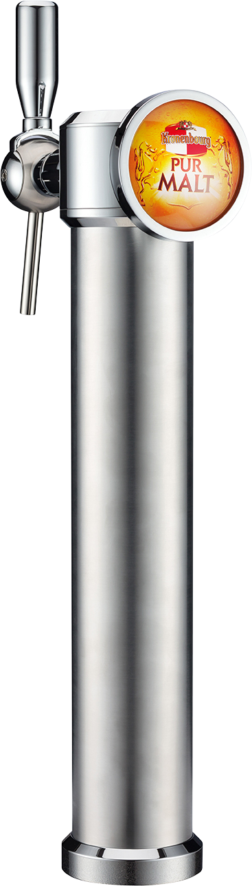 Finesse et élégance. Sa tête chromée porte le logo lumineux à effet loupe. Montée sur un tube 100% inox brillant ou brossé.