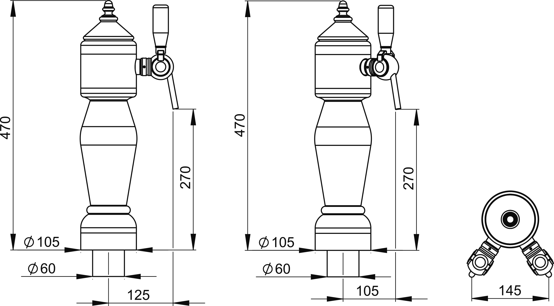 1 ou 2 tirages avec un décor « effet marbré » très réussi sur comptoir. Structure en laiton poli ou chromé, corps en résine.