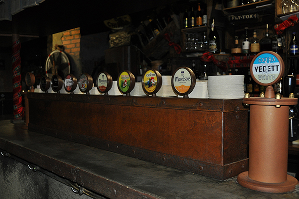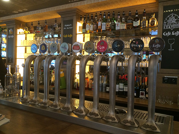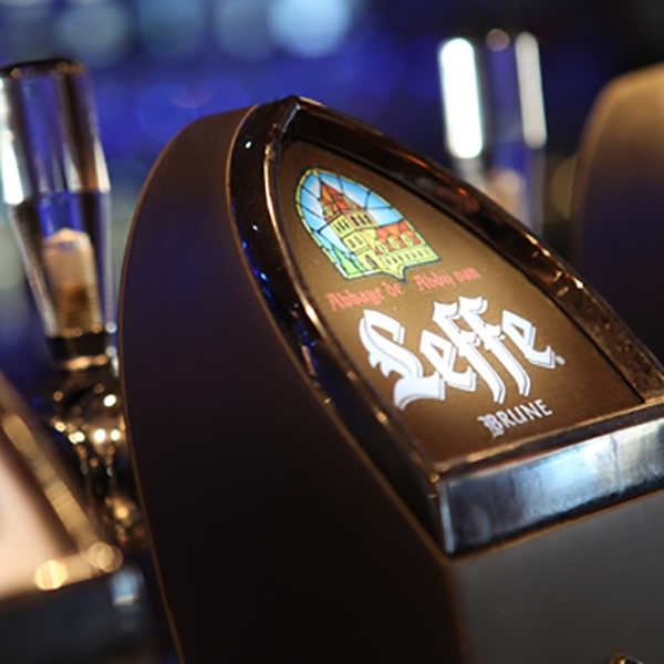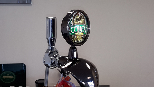 Pompe a bière de style rétro, imitation vieil argent, pour concept "Café Leffe"