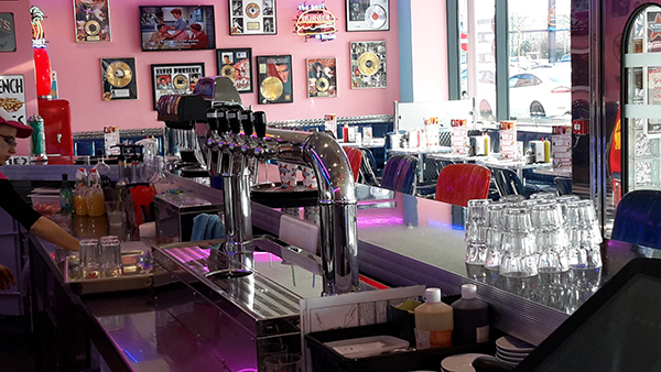 Colonne sur mesure en inox poli pour enseigne "Tommy's Dinner", style US.
