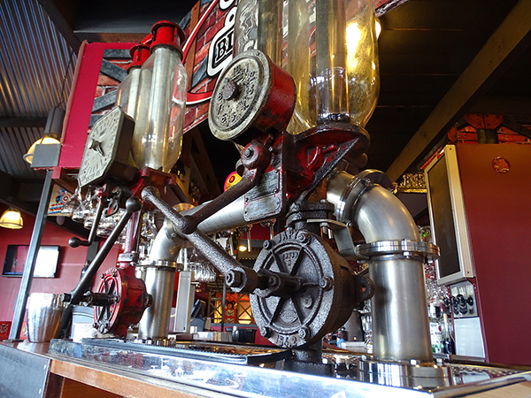 Pompe à bière créée à partir d'une pompe à essence rétro, pour l'enseigne "Little Big Jack"